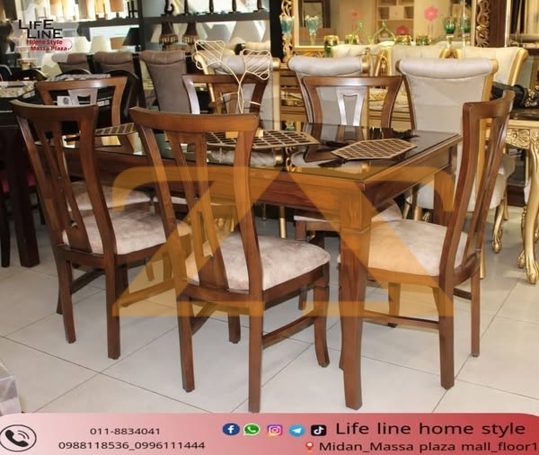6 كراسي خشب زان / ترس قشر بلور