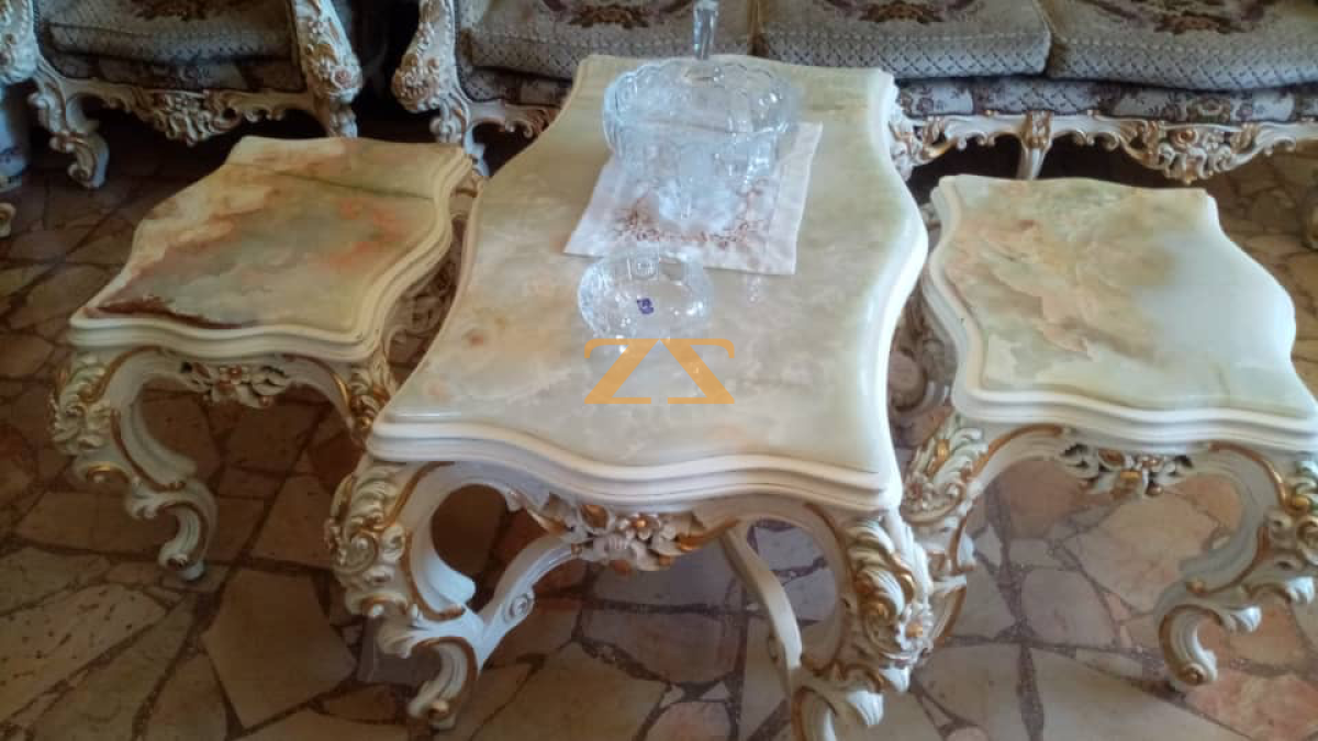 غرفة ضيوف حفر زان بحاله جيدة مكونة من ثلاثيه و ٦ مفار وطاولة نص زان رخام و ٢ طاوله رخام صغار وطاولة عدد ٢ زوايا