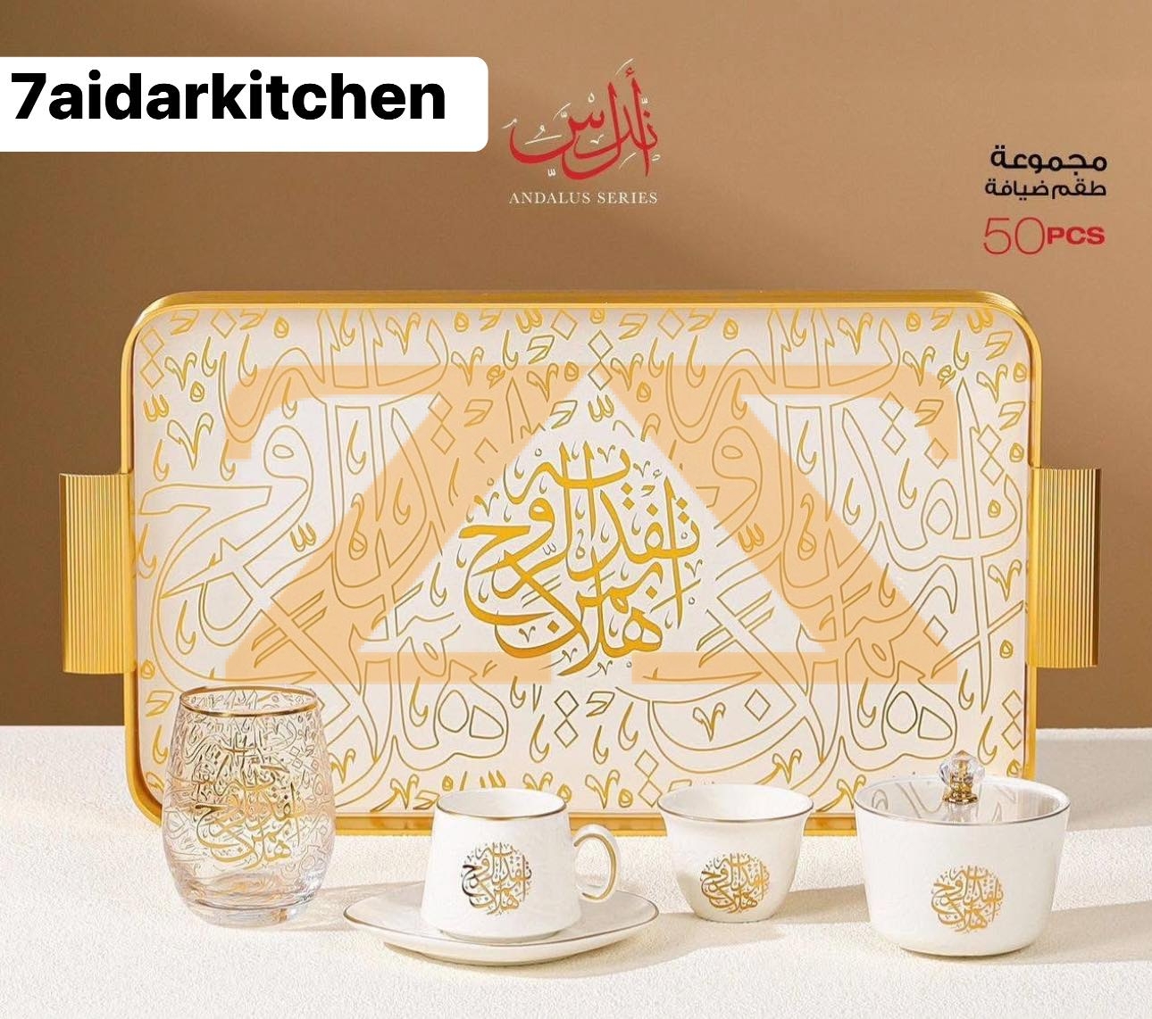 رحبي بضيوفك وقدمي ضيافتك في رمضان على طريقتنا المميزة باختيارك مجموعة الأندلس الفاخرة بتصميم يعكس جمال الخط العربي ….