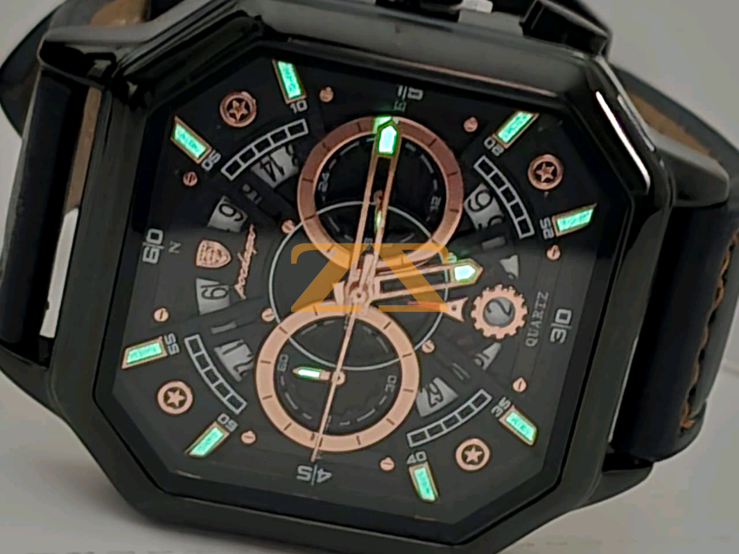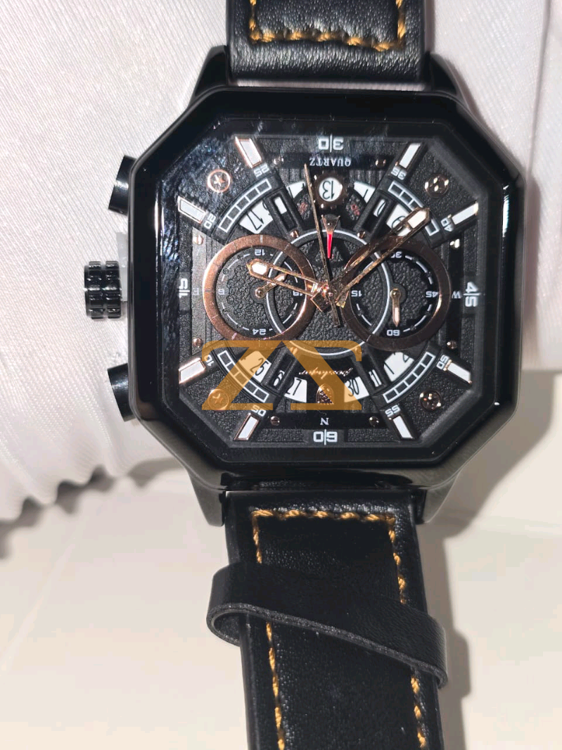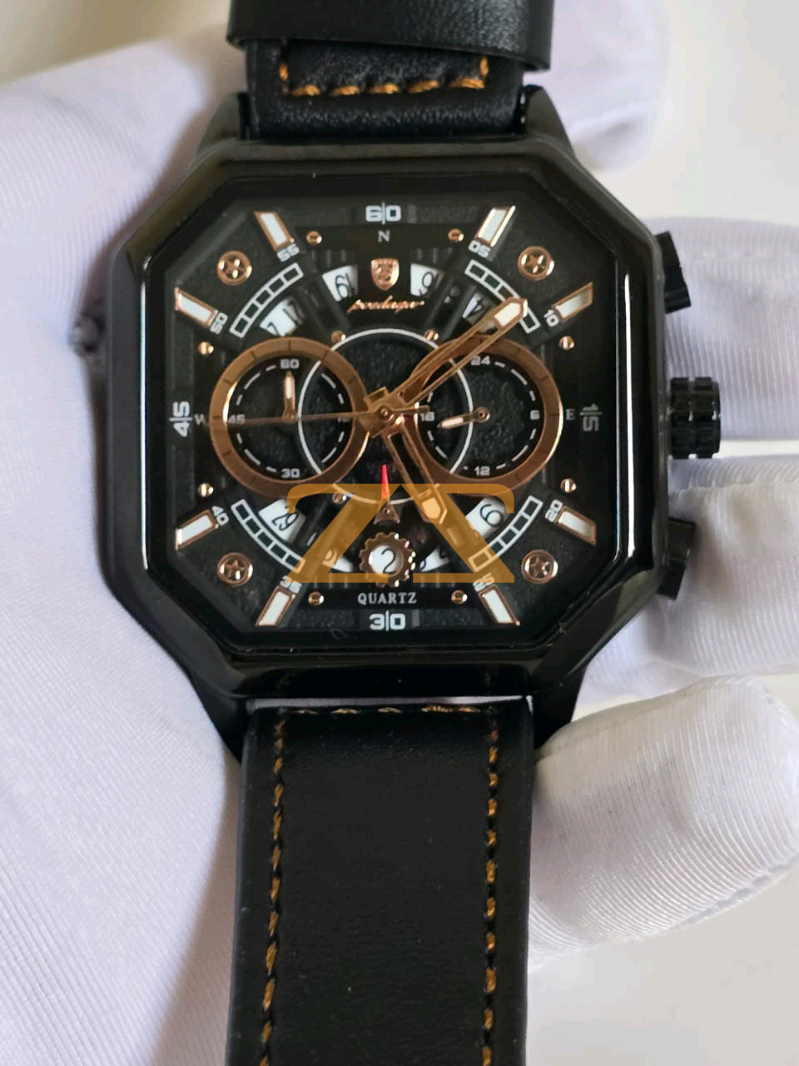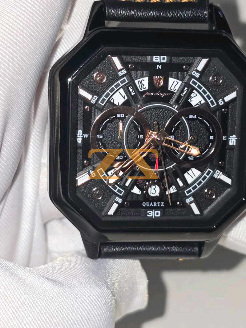 ساعاة رجالية فاخرة و مميزة مقاومة للماء و الخدوش ومضيءة ليلا جلد طبيعي 💯