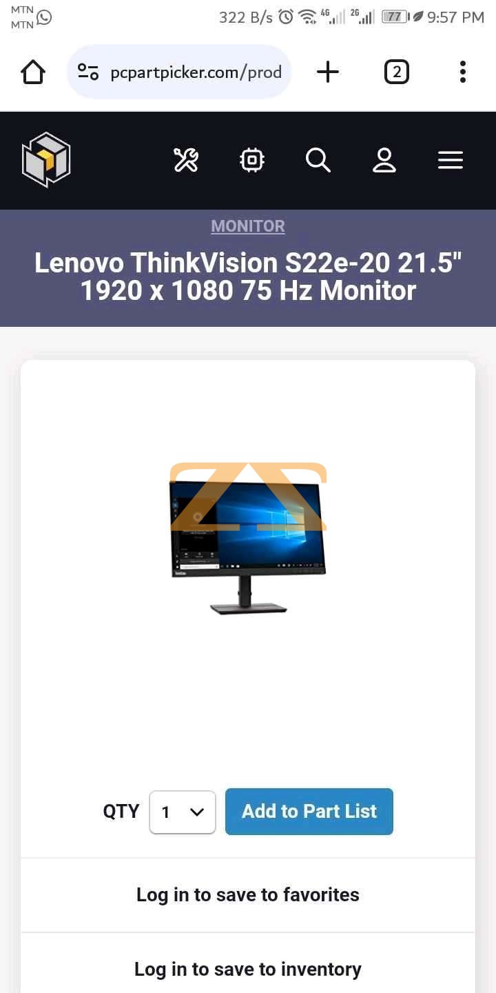 شاشة مكتبية Lenovo 21.5 Inch