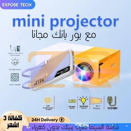 بروجكتر صغير بيعطيك شاشة بتصل إلى 100 بوصة