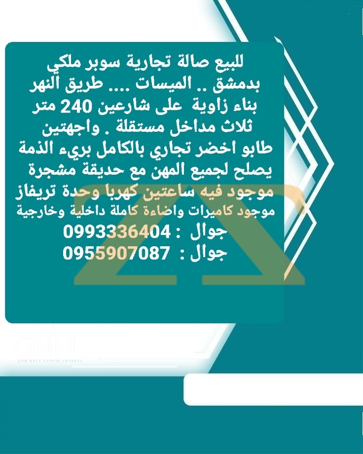 للبيع صالة تجارية سوبر ملكي بدمشق .. الميسات .