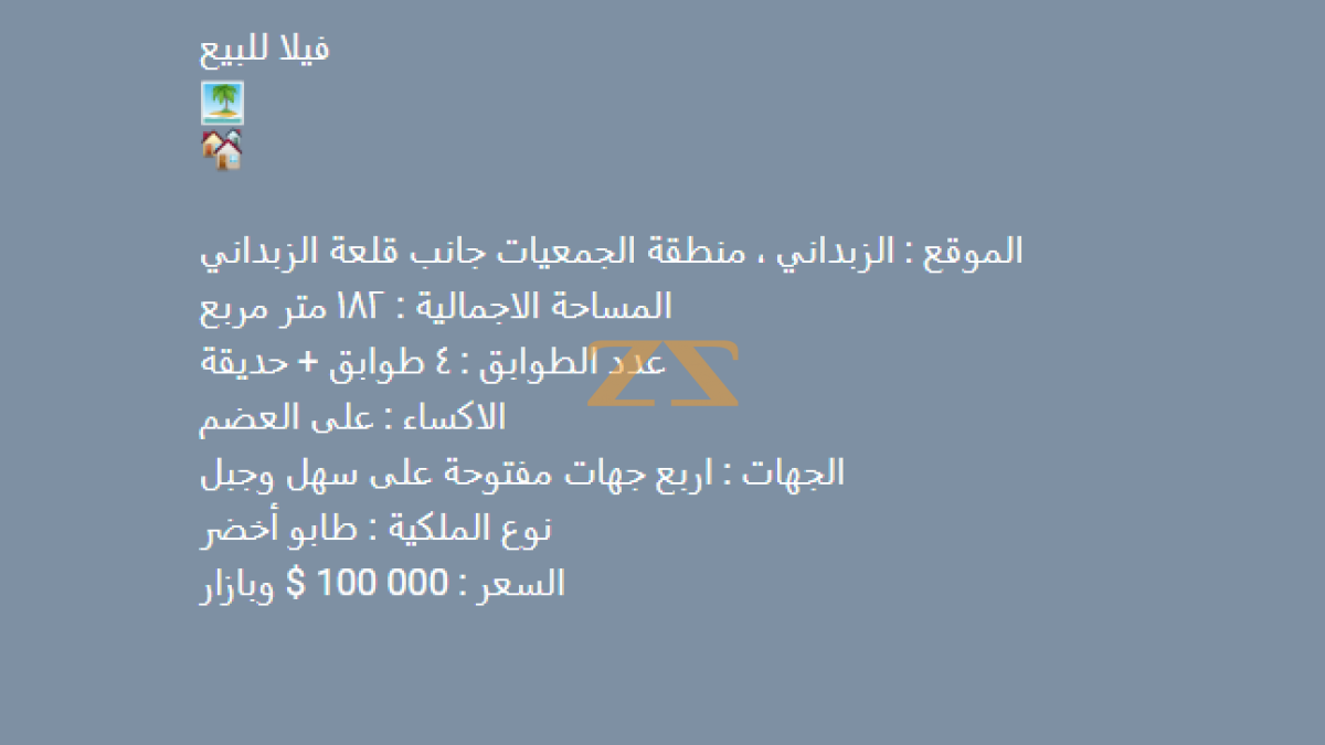 للبيع فيلا في الزبداني 4 طوابق