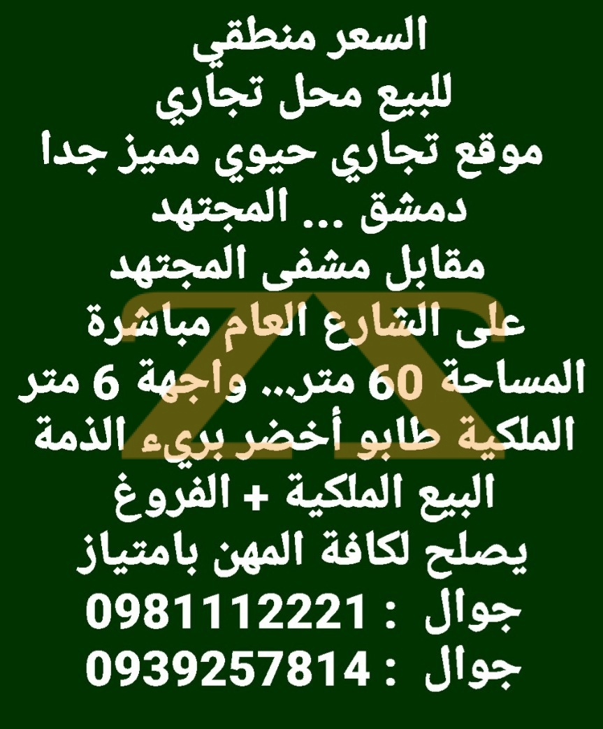 للبيع محل تجاري في دمشق - المجتهد